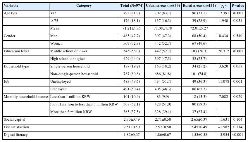 Predictors of Digital Literacy among Older Adults Living in Urban and Rural Areas